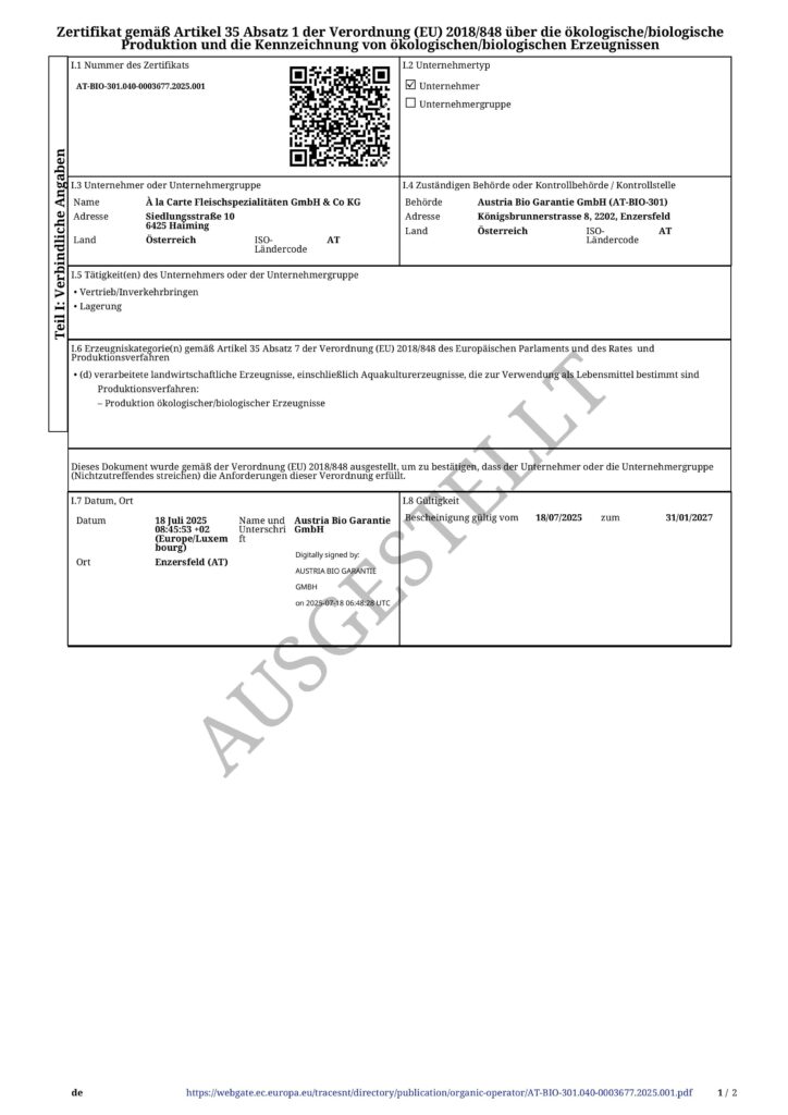 à la Carte – Fleischspezialitäten & mehr